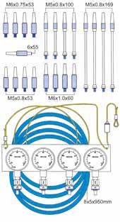 Il kit contiene Manometri con misurazione da 0 a 76 cmHg – tubi in gomma da 8 x 5 x 950 mm.- connettori da M5x0,8×169 mm. – M5x0,8×53 mm. – M5x0,8×100 mm. – M6x0,75×53 mm. – M6x1,0x60 mm. e 1 connettore da 6 x 55
